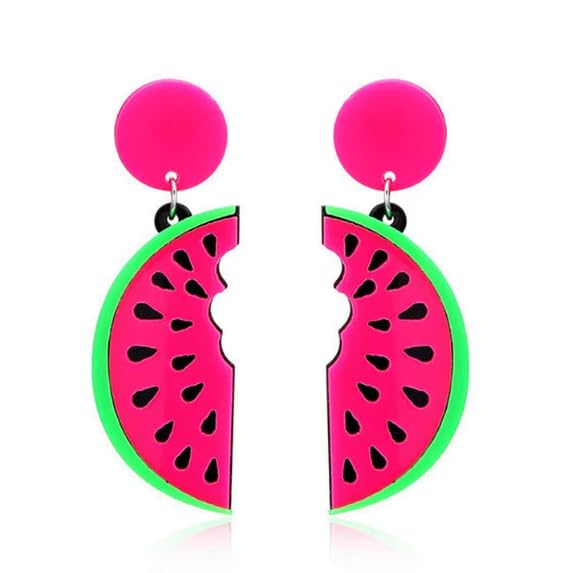 Statement Watermelon Drop Earrings, Neon Pink and Green, Large Acrylic Fruit Design